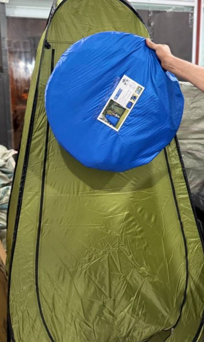دارای دوپنجره وجاصابونی دارای گیره ومیخ وبند مخصوص جهت محکم کاری ونگهداری: ارتفاع ۱۹۰ عذض۱۲۰ دارای کیف دردورنگ سبز وابی